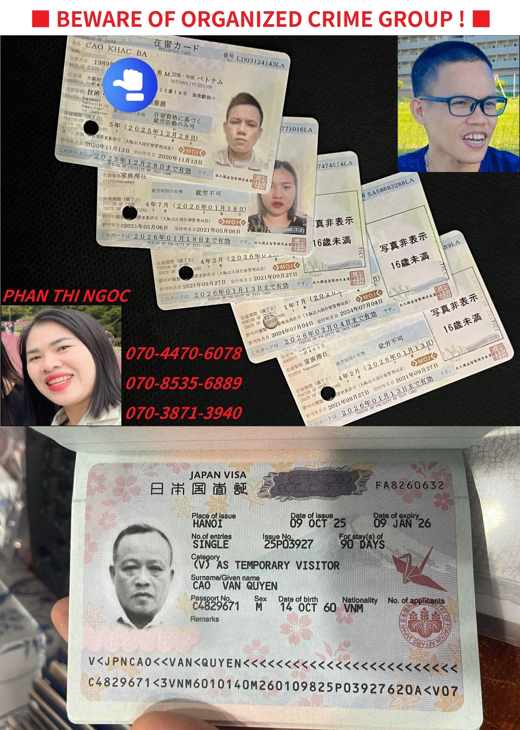 CAO KHAC BA 逮捕 偽造 人身売買 検挙 放火魔 ひき逃げ